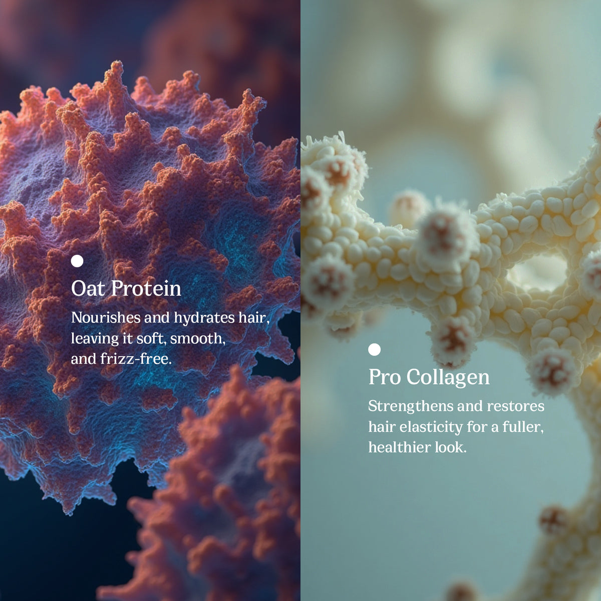 • Hydrates & Nourishes – Infused with Oat Protein to lock in essential moisture, leaving hair soft, smooth, and deeply hydrated without heaviness.
